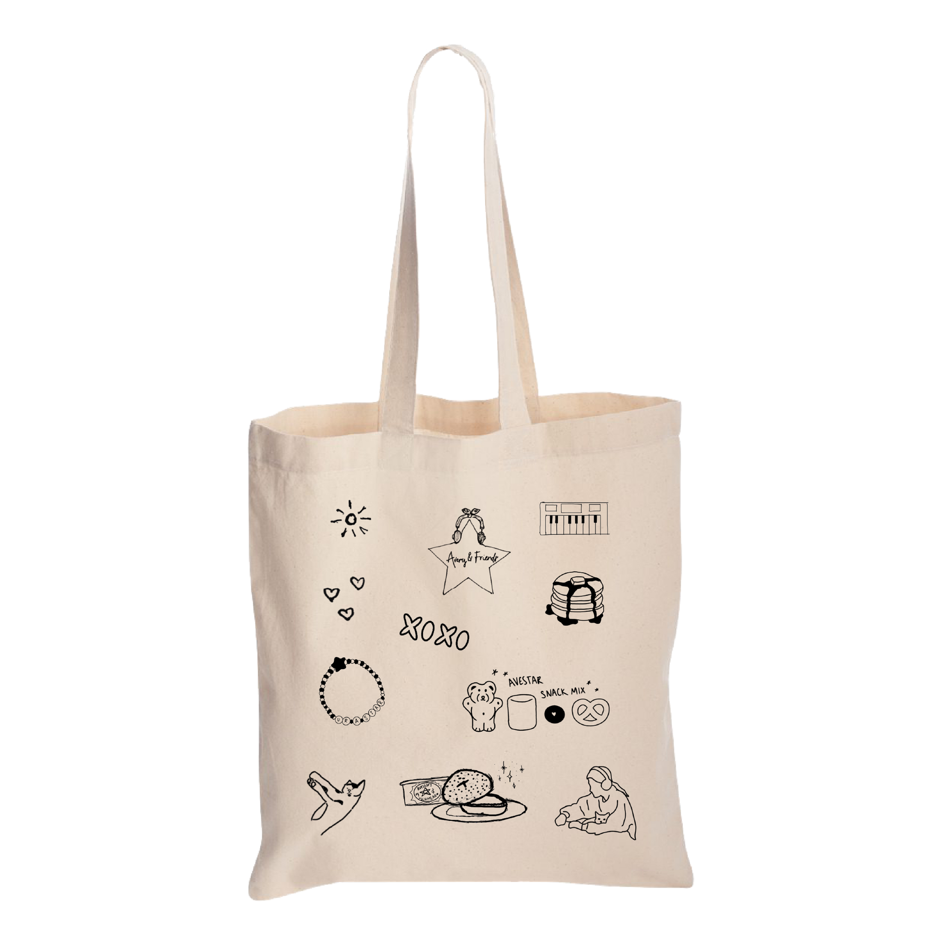 tote bag including drawings from Avery’s Instagram close friends!